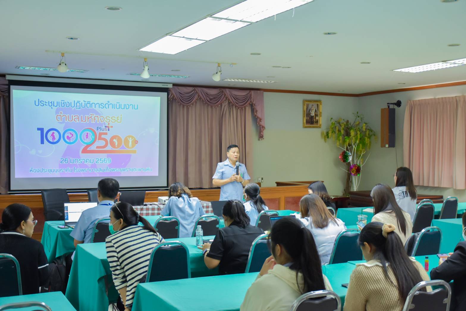 วันที่ 26 มกราคม 2569 ศูนย์อนามัยที่ 3 นครสวรรค์ เป็นวิทยากรบรรยายให้ความรู้โครงการประชุมเชิงปฏิบัติการดำเนินงานตำบลมหัศจรรย์ 1,000 วัน Plus สู่ 2,500 วัน เครือข่ายบริการสุขภาพอำเภอตะพานหิน จังหวัดพิจิตร ให้แก่เจ้าหน้าที่สาธารณสุข โดยมีนายพัลลภ พลสว่าง สาธารณสุขอำเภอตะพานหิน เป็นประธานเปิดการประชุม เพื่อสร้างความเข้าใจในแนวทางการบูรณาการขับเคลื่อนงานตำบลมหัศจรรย์ 1,000 วัน Plus สู่ 2,500 วัน อันจะนำไปสู่ผลลัพธ์สำคัญ ที่เป็นจุดเริ่มต้นของการส่งเสริมสุขภาพให้การตั้งครรภ์มีคุณภาพ ลูกเกิดรอด แม่ปลอดภัย และเด็กปฐมวัยเติบโตเต็มศักยภาพ ณ ห้องประชุมบุษราคัม โรงพยาบาลสมเด็จพระยุพราชตะพานหิน อำเภอตะพานหิน จังหวัดพิจิตร